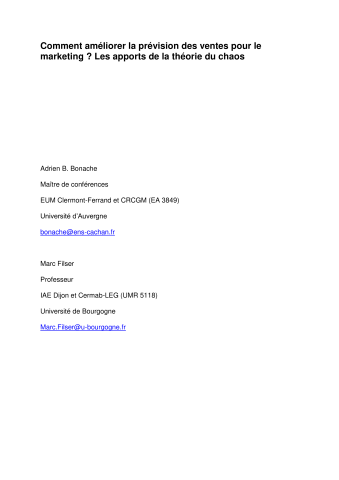 Comment améliorer la prévision des ventes pour le marketing ? Les apports de la théorie du chaos