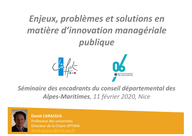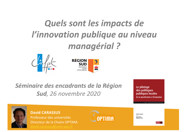 - Depuis 2014 • Directeur de la Chaire OPTIMA (Observatoire du PiloTage de l’Innovation Managériale locAle)