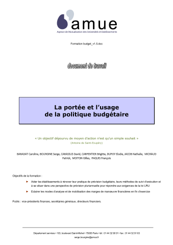 - 2004-2005 • Chargé de mission pour la mise en œuvre de la LOLF, UPPA