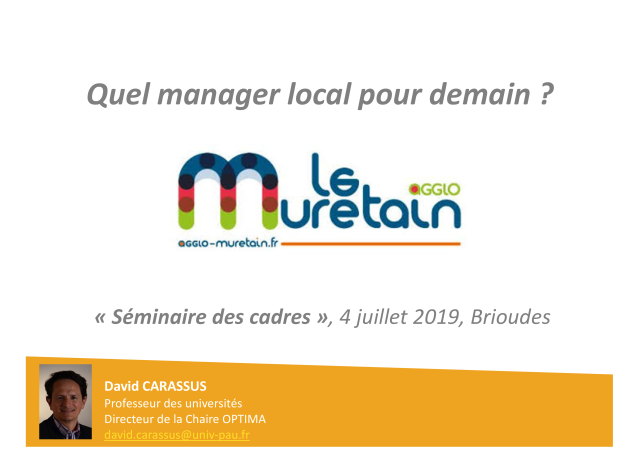 - Depuis 2014 • Directeur de la Chaire OPTIMA (Observatoire du PiloTage de l’Innovation Managériale locAle)