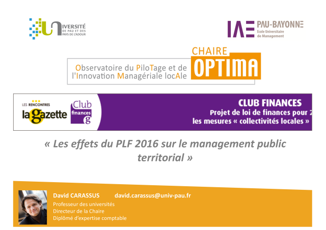 - Depuis 2006 • Responsable du Master « Management des collectivités locales », IAE, UPPA