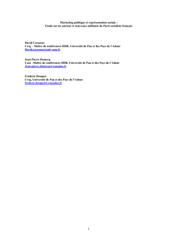 Marketing politique et représentation sociale : étude sur les anciens et nouveaux militants du Parti socialiste français