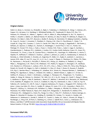 - Auteurs : Eli A StahlGerome BreenAndreas J ForstnerAndrew McquillinStephan RipkeVassily TrubetskoyManuel MattheisenYunpeng WangJonathan R I ColemanHéléna A GasparChristiaan A de LeeuwStacy SteinbergJennifer M Whitehead PavlidesMaciej TrzaskowskiEnda M ByrneTune H PersPeter A HolmansAlexander L RichardsLiam AbbottEsben AgerboHuda AkilDiego AlbaniNey Alliey-RodriguezThomas D AlsAdebayo AnjorinVerneri AntillaSwapnil AwasthiJudith A BadnerMarie Bækvad-HansenJack D BarchasNicholas BassMichael BauerRichard BelliveauSarah E BergenCarsten Bøcker PedersenErlend BøenMarco P BoksJames BoocockMonika BuddeWilliam BunneyMargit BurmeisterJonas Bybjerg-GrauholmWilliam ByerleyMiquel CasasFelecia CerratoPablo CervantesKimberly ChambertAlexander W CharneyDanfeng ChenClaire ChurchhouseToni-Kim ClarkeWilliam CoryellDavid W CraigCristiana CruceanuDavid CurtisPiotr M CzerskiAnders M DaleSimone de JongFranziska DegenhardtJurgen Del-FaveroJ Raymond DepauloSrdjan DjurovicAmanda L DobbynAshley DumontTorbjørn ElvsåshagenValentina Escott-PriceChun Chieh FanSascha B FischerMatthew FlickingerTatiana M ForoudLiz FortyJosef FrankChristine FraserNelson B FreimerLouise FrisénKatrin GadeDiane GageJulie GarnhamClaudia GiambartolomeiMarianne Giørtz PedersenJaqueline GoldsteinScott D GordonKatherine Gordon-SmithElaine K GreenMelissa J GreenTiffany A GreenwoodJakob GroveWeihua GuanJosé Guzman-ParraMarian L HamshereMartin HautzingerUrs HeilbronnerStefan HermsMaria HipolitoPer HoffmannDominic HollandLaura HuckinsStéphane JamainJessica S JohnsonAnders JuréusRadhika KandaswamyRobert KarlssonJames L KennedySarah Kittel-SchneiderJames A KnowlesManolis KogevinasAnna C KollerRalph KupkaCatharina LavebrattJacob LawrenceWilliam B LawsonMarkus LeberPhil H LeeShawn E LevyJun Z LiChunyu LiuSusanne LucaeAnna MaaserDonald J MacintyrePamela B MahonWolfgang MaierLina MartinssonSteve MccarrollPeter McguffinMelvin G McinnisJames D MckayHelena MedeirosSarah E MedlandFan MengLili MilaniGrant W MontgomeryDerek W MorrisThomas W MühleisenNiamh MullinsHoang NguyenCaroline M NievergeltAnnelie Nordin AdolfssonEvaristus A NwuliaClaire O'DonovanLoes M Olde LoohuisAnil P S OriLilijana OrucUrban ÖsbyRoy H PerlisAmy PerryAndrea PfennigJames B PotashShaun M PurcellEline J RegeerAndreas ReifCéline S ReinboldJohn P RiceFabio RivasMargarita RiveraPanos RoussosDouglas M RuderferEuijung RyuCristina Sánchez-MoraAlan F SchatzbergWilliam A ScheftnerNicholas J SchorkCynthia Shannon WeickertTatyana ShehktmanPaul D ShillingEngilbert SigurdssonClaire SlaneyOlav B SmelandJanet L SobellChristine Søholm HansenAnne T SpijkerDavid St ClairMichael SteffensJohn S StraussFabian StreitJana StrohmaierSzabolcs SzelingerRobert C ThompsonThorgeir E ThorgeirssonJens TreutleinHelmut VedderWeiqing WangStanley J WatsonThomas W WeickertStephanie H WittSimon XiWei XuAllan H YoungPeter ZandiPeng ZhangSebastian ZöllnerRolf AdolfssonIngrid AgartzMartin AldaLena BacklundBernhard T BauneFrank BellivierWade H BerrettiniJoanna M BiernackaDouglas H R BlackwoodMichael BoehnkeAnders D BørglumAiden CorvinNicholas CraddockMark J DalyUdo DannlowskiTõnu EskoBruno EtainMark FryeJanice M FullertonElliot S GershonMichael GillFernando GoesMaria Grigoroiu-SerbanescuJoanna HauserDavid M HougaardChristina M HultmanIan JonesLisa A JonesRené S KahnGeorge KirovMikael LandénMarion LeboyerCathryn M LewisQingqin S LiJolanta LissowskaNicholas G MartinFermin MayoralSusan L McelroyAndrew M McintoshFrancis J McmahonIngrid MelleAndres MetspaluPhilip B MitchellGunnar MorkenOle MorsPreben Bo MortensenBertram Müller-MyhsokRichard M MyersBenjamin M NealeVishwajit NimgaonkarMerete NordentoftMarkus M NöthenMichael C O'DonovanKetil J OedegaardMichael J OwenSara A PacigaCarlos PatoMichele T PatoDanielle PosthumaJosep Antoni Ramos-QuirogaMarta RibasésMarcella RietschelGuy A RouleauMartin SchallingPeter R SchofieldThomas G SchulzeAlessandro SerrettiJordan W SmollerHreinn StefanssonKari StefanssonEystein StordalPatrick F SullivanGustavo TureckiArne E VaalerEduard VietaJohn B VincentThomas WergeJohn I NurnbergerNaomi R WrayArianna Di FlorioHoward J EdenbergSven CichonRoel A OphoffLaura J ScottOle A AndreassenJohn KelsoePamela Sklar
