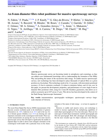 Résumé : The third generation of the Sloan Digital Sky Survey (SDSS-III) took data from 2008 to 2014 using the original SDSS wide-field imager, the original and an upgraded multi-object fiber-fed optical spectrograph, a new near-infrared high-resolution spectrograph, and a novel optical interferometer. All the data from SDSS-III are now made public. In particular, this paper describes Data Release 11 (DR11) including all data acquired through 2013 July, and Data Release 12 (DR12) adding data acquired through 2014 July (including all data included in previous data releases), marking the end of SDSS-III observing. Relative to our previous public release (DR10), DR12 adds one million new spectra of galaxies and quasars from the Baryon Oscillation Spectroscopic Survey (BOSS) over an additional 3000 sq. deg of sky, more than triples the number of H-band spectra of stars as part of the Apache Point Observatory (APO) Galactic Evolution Experiment (APOGEE), and includes repeated accurate radial velocity measurements of 5500 stars from the Multi-Object APO Radial Velocity Exoplanet Large-area Survey (MARVELS). The APOGEE outputs now include measured abundances of 15 different elements for each star. In total, SDSS-III added 2350 sq. deg of ugriz imaging; 155,520 spectra of 138,099 stars as part of the Sloan Exploration of Galactic Understanding and Evolution 2 (SEGUE-2) survey; 2,497,484 BOSS spectra of 1,372,737 galaxies, 294,512 quasars, and 247,216 stars over 9376 sq. deg; 618,080 APOGEE spectra of 156,593 stars; and 197,040 MARVELS spectra of 5,513 stars. Since its first light in 1998, SDSS has imaged over 1/3 of the Celestial sphere in five bands and obtained over five million astronomical spectra.
