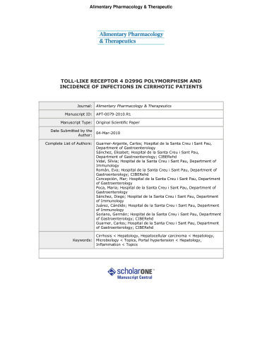 TOLL-LIKE RECEPTOR 4 D299G POLYMORPHISM AND INCIDENCE OF INFECTIONS IN CIRRHOTIC PATIENTS