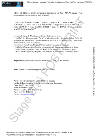 Effect of different antihypertensive treatments on Ras / MAPKinases / Akt activation in hypertension and diabetes