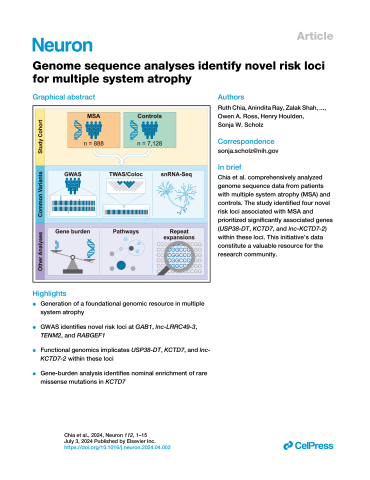 - Auteurs : Ruth ChiaAnindita RayZalak ShahJinhui DingPaola RuffoMasashi FujitaVilas MenonSara Saez-AtienzarPaolo RehoKarri KaivolaRonald L WaltonRegina H ReynoldsRamita KarraShaimaa SaitFulya AkcimenMonica Diez-FairenIgnacio AlvarezAlessandra FanciulliNadia StefanovaKlaus SeppiSusanne DuerrFabian LeysFlorian KrismerVictoria SidoroffAlexander ZimprichWalter PirkerOlivier RascolAlexandra Foubert-SamierWassilios MeissnerFrancois TisonAnne Pavy-Le TraonMaria Teresa PellecchiaPaolo BaroneMaria Claudia RussilloJuan Marin-LahozJaime KulisevskySoraya TorresPablo MirMaria Teresa PerinanChristos ProukakisViorica ChelbanLesley WuYee Y GohLaura ParkkinenMichele T HuChristopher KobyleckiJennifer A SaxonSara RollinsonEmily GarlandItalo BiaggioniIrene LitvanIleana RubioRoy N AlcalayKimberly T KweiSteven J LubbeQinwen MaoMargaret E FlanaganRudolph J CastellaniVikram KhuranaAlain NdayisabaAndrea CalvoGabriele MoraAntonio CanosaGianluca FlorisRyan C BohannanAnni MooreLucy Norcliffe-KaufmannJose-Alberto PalmaHoracio KaufmannChangyoun KimMichiyo IbaEliezer MasliahTed M DawsonLiana S RosenthalAlexander PantelyatMarilyn S AlbertOlga PletnikovaJuan C TroncosoJon InfanteCarmen LagePascual Sanchez-JuanGeidy E SerranoThomas G BeachPau PastorHuw R MorrisDiego AlbaniJordi ClarimonGregor K WenningJohn A HardyMina RytenEric TopolAli TorkamaniAdriano ChioDavid A BennettPhilip L de JagerPhilip A LowWolfgang SingerWilliam P CheshireZbigniew K WszolekDennis W DicksonBryan J TraynorJ Raphael GibbsClifton L DalgardOwen A RossHenry HouldenSonja W Scholz