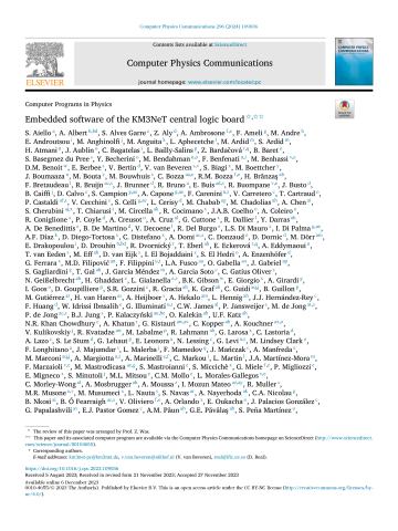 Résumé : The KM3NeT Collaboration is building and operating two deep sea neutrino telescopes at the bottom of the Mediterranean Sea. The telescopes consist of latices of photomultiplier tubes housed in pressure-resistant glass spheres, called digital optical modules and arranged in vertical detection units. The two main scientific goals are the determination of the neutrino mass ordering and the discovery and observation of high-energy neutrino sources in the Universe. Neutrinos are detected via the Cherenkov light, which is induced by charged particles originated in neutrino interactions. The photomultiplier tubes convert the Cherenkov light into electrical signals that are acquired and timestamped by the acquisition electronics. Each optical module houses the acquisition electronics for collecting and timestamping the photomultiplier signals with one nanosecond accuracy. Once finished, the two telescopes will have installed more than six thousand optical acquisition nodes, completing one of the more complex networks in the world in terms of operation and synchronization. The embedded software running in the acquisition nodes has been designed to provide a framework that will operate with different hardware versions and functionalities. The hardware will not be accessible once in operation, which complicates the embedded software architecture. The embedded software provides a set of tools to facilitate remote manageability of the deployed hardware, including safe reconfiguration of the firmware. This paper presents the architecture and the techniques, methods and implementation of the embedded software running in the acquisition nodes of the KM3NeT neutrino telescopes.