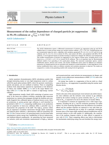 Résumé : The ALICE Collaboration reports a differential measurement of inclusive jet suppression using pp and Pb–Pb collision data at a center-of-mass energy per nucleon–nucleon collision sNN=5.02 TeV. Charged-particle jets are reconstructed using the anti-kT algorithm with resolution parameters R=0.2, 0.3, 0.4, 0.5, and 0.6 in pp collisions and R=0.2, 0.4, 0.6 in central (0–10%), semi-central (30–50%), and peripheral (60–80%) Pb–Pb collisions. A novel approach based on machine learning is employed to mitigate the influence of jet background. This enables measurements of inclusive jet suppression in new regions of phase space, including down to the lowest jet pT≥40 GeV/c at R=0.6 in central Pb–Pb collisions. This is an important step for discriminating different models of jet quenching in the quark–gluon plasma. The transverse momentum spectra, nuclear modification factors, derived cross section, and nuclear modification factor ratios for different jet resolution parameters of charged-particle jets are presented and compared to model predictions. A mild dependence of the nuclear modification factor ratios on collision centrality and resolution parameter is observed. The results are compared to a variety of jet-quenching models with varying levels of agreement.