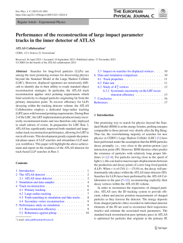 Résumé : Searches for long-lived particles (LLPs) are among the most promising avenues for discovering physics beyond the Standard Model at the Large Hadron Collider (LHC). However, displaced signatures are notoriously difficult to identify due to their ability to evade standard object reconstruction strategies. In particular, the default ATLAS track reconstruction applies strict pointing requirements which limit sensitivity to charged particles originating far from the primary interaction point. To recover efficiency for LLPs decaying within the tracking detector volume, the ATLAS Collaboration employs a dedicated large-radius tracking (LRT) pass with loosened pointing requirements. During Run 2 of the LHC, the LRT implementation produced many incorrectly reconstructed tracks and was therefore only deployed in small subsets of events. In preparation for LHC Run 3, ATLAS has significantly improved both standard and large-radius track reconstruction performance, allowing for LRT to run in all events. This development greatly expands the potential phase-space of LLP searches and streamlines LLP analysis workflows. This paper will highlight the above achievement and report on the readiness of the ATLAS detector for track-based LLP searches in Run 3.