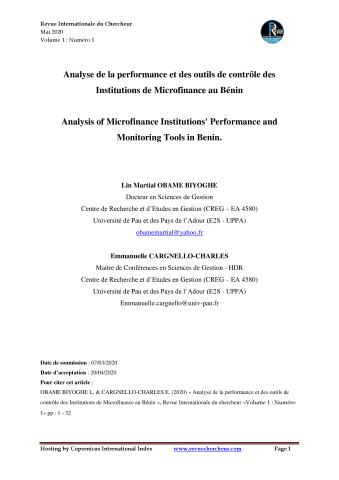 Analyse de la performance et des outils de contrôle des institutions de microfinance au Bénin