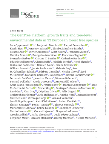 - Auteurs : Raquel BenavidesBárbara CarvalhoCristina BastiasDavid López‐quirogaAntonio MasStephen CaversAlan GrayAudrey AlbetRicardo AlíaOlivier AmbrosioFilippos AravanopoulosFrancisco AuñónCamilla AvanziEvangelia AvramidouFrancesca BagnoliEduardo BallesterosEvangelos BarbasCatherine BastienFrédéric BernierHenry BignaletDamien BouicWilliam BrunettoJurata BuchovskaAna Cabanillas‐saldañaNicolas ChevalJosé ClimentMarianne CorreardEva CremerDarius DanusevičiusBenjamin DauphinFernando del CañoJean‐luc DenouBernard DokhelarRémi DourtheAnna‐maria FarsakoglouAndreas FeraPatrick FontiIoannis GanopoulosJosé García del BarrioOlivier GilgSantiago C. Gonzalez-MartinezRené GrafDelphine GrivetFelix GugerliChristoph HartleitnerKatrin HeerEnja HollenbachAgathe HurelBernard IssehuthFlorence CourdierJouineau ArnaudJan‐philipp KappnerKatri KärkkäinenRobert KesälahtiFlorian KnutzenSonja KujalaTimo KumpulaMariaceleste LabriolaCeline LalanneJohannes LambertzMartin LascouxGrégoire Le ProvostMirko LiesebachErmioni MalliarouJérémy MarchonMariotte NicolasElisabet Martínez‐sanchoSilvia MatesanzHelge MeischnerCélia MichoteyPascal MilesiSandro MorgantiTor MykingAnne NilsenEduardo NotivolLars OpgenoorthGeir ØstrengBirte PakullAndrea PiottiChristophe PlomionNicolas PoinotMehdi PringarbeLuc PuzosTanja PyhäjärviAnnie RaffinJosé Ramírez‐valienteChristian RellstabSebastian RichterJuan Robledo‐arnuncioSergio San SegundoOuti SavolainenVolker SchneckSilvio SchuelerIvan ScottiVladimir SemerikovJørn Henrik SønstebøIlaria SpanuJean J. ThevenetMari Mette TollefsrudNorbert TurionGiovanni Giuseppe VendraminMarc VillarJohan WestinBruno FadyFernando ValladaresVéronique Jorge
