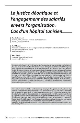 Perception de responsabilité sociale des entreprises et engagement envers l’organisation : le rôle de la justice déontique