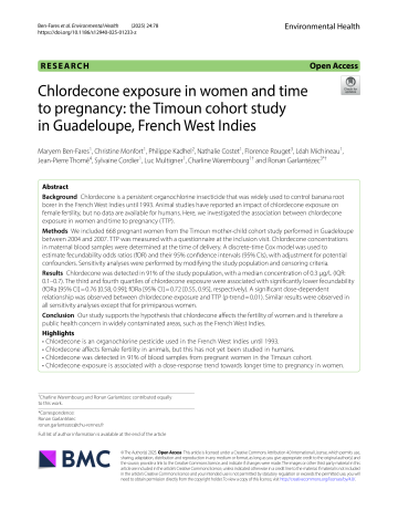 - Auteurs : Maryem Ben-FaresChristine MonfortPhilippe KadhelNathalie CostetFlorence RougetLeah MichineauJean-Pierre ThoméSylvaine CordierLuc MultignerCharline WarembourgRonan Garlantézec