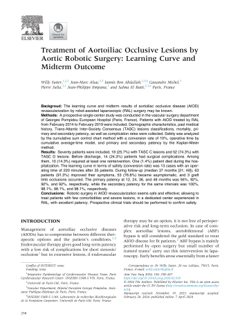 Treatment of Aortoiliac Occlusive Lesions by Aortic Robotic Surgery: Learning Curve and Midterm Outcome
