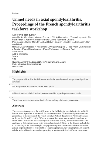Unmet needs in axial spondyloarthritis. Proceedings of the French spondyloarthritis taskforce workshop