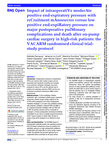Impact of intraoperatiVe moderAte positive end-expiratory pressure with reCruitment mAnoeuvres versus low positive end-expiRatory pressure on major postoperative pulMonary complications and death after on-pump cardiac surgery in high-risk patients: the VACARM randomised clinical trial-study protocol