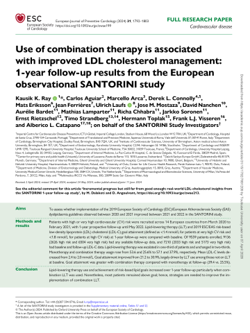 Use of combination therapy is associated with improved LDL cholesterol management: 1-year follow-up results from the European observational SANTORINI study