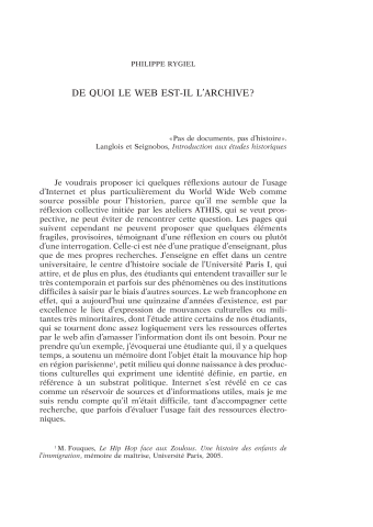 Résumé : Nous proposons ici quelques réflexions autour de l'usage d'Internet et plus particulièrement du World Wide Web comme source possible pour l'historien Les pages qui suivent cependant ne peuvent proposer à la date d'écriture que quelques éléments fragiles, provisoires, l'élaboration d'une diplomatique adaptée au document électronique étant rendue difficile pare les rapides évolutions de celui-ci.