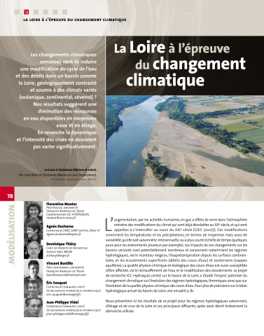 Résumé : Les changements climatiques annoncés vont-ils induire une modification du cycle de l'eau et des débits dans un bassin comme la Loire, géologiquement contrasté et soumis à des climats variés (océanique, continental, cévenol) ? Nos résultats suggèrent une diminution des ressources en eau disponibles en moyennes eaux et en étiage. En revanche la dynamique et l'intensité des crues ne devraient pas varier significativement.