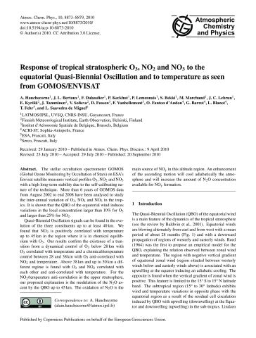 Alain HauchecorneJean-Loup BertauxFrancis DalaudierPhilippe KeckhutPerrine LemennaisSlimane BekkiMarion MarchandJean-Claude LebrunErkki KyröläJohanna TamminenViktoria F. SofievaDidier FussenF. VanhellemontOdile Fanton d'AndonGilbert BarrotLaurent BlanotThorsten FehrLidia Saavedra de Miguel