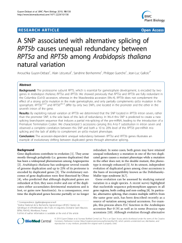 • A SNP associated with alternative splicing of RPT5b causes unequal redundancy between RPT5a and RPT5b among Arabidopsis thaliana natural variation