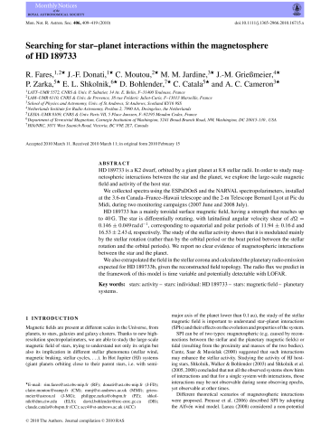 • Auteurs : R. FarèsJean-François DonatiClaire MoutouM. M. JardineJean-Mathias GriessmeierPhilippe ZarkaE. L. ShkolnikDavid A. BohlenderClaude CatalaA. C. Cameron