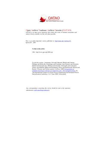 Résumé : This presentation is aimed to introduce the EXTRAPOLIS project, subsidised by the CNRS (France) in the frame of the “Energy 2006-2009” program (PR1-2-22). The general purpose of this project is to promote the use of multifunctional exchangers-reactor at industrial scale. The scientific results are the subject of 3 communications in this GPE congress.