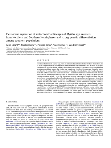2008_Gérard_Mol.Phyl.Evol._pr_Pleistocene separation of mitochondrial lineages of Mytilus spp. mussels from Northern to Southern hemispheres and strong genetic differentiation among southern populations.pdf