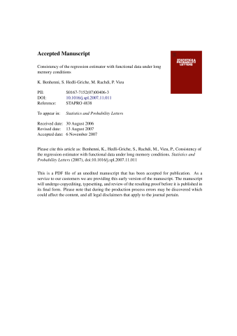- Publié dans Statistics and Probability Letters le 31/10/2020
