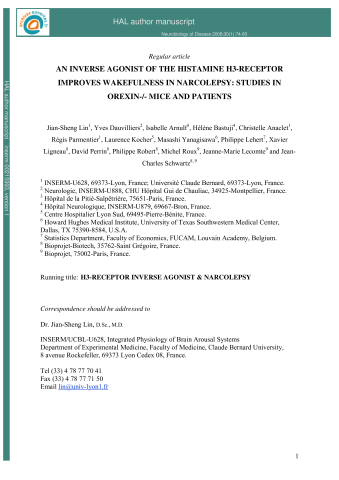 Jian‐sheng LinYves DauvilliersIsabelle ArnulfHélène BastujiChristelle AnacletRégis ParmentierLaurence KocherMasashi YanagisawaPhilippe LehertXavier LigneauDavid PerrinPhilippe RobertMichel J. RouxJeanne-Marie LecomteJean-Charles Schwartz