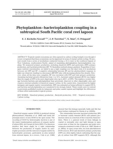 Phytoplankton-bacterioplankton coupling in a subtropical South Pacific coral reef lagoon