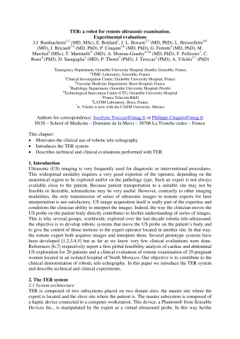Jean-Jacques BanihachemiEric BoidardJean-Luc BossonLuc BressolletteIvan BricaultPhilippe CinquinGilbert R. FerrettiMaud MarchalThomas MartinelliAlexandre Moreau-GaudryFranck PelissierChristian RouxDominique SaragagliaPierre ThorelJocelyne TroccazAdriana Vilchis