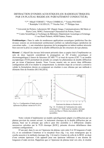 Résumé : L'objectif des travaux brièvement présentés dans ce papier était d'implémenter au sein de deux logiciels considérant la propagation en 3D d'ondes acoustiques et électromagnétiques à lancer de faisceaux (ICARE **) et tracé de rayons (CRT *) un modèle asymptotique (TUD) permettant de prendre en compte les phénomènes de double diffraction par un écran d'épaisseur donnée. Nous l'avons ensuite mis en œuvre dans différentes configurations afin d'en étudier le comportement. La dernière étape de ce travail a consisté à valider la formulation choisie en comparéléments finis de frontière (B.E.M) [JEA]