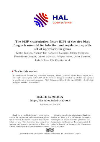 The bZIP transcription factor BIP1 of the rice blast fungus is essential for infection and regulates a specific set of appressorium genes