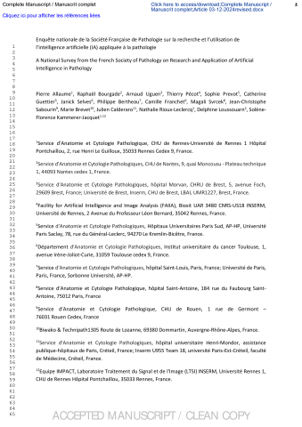 Enquête nationale de la Société française de pathologie sur la recherche et l’utilisation de l’intelligence artificielle (IA) appliquée à la pathologie