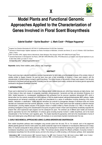 Résumé : Flower scents have been subjected to extensive chemical characterization for many years, providing detailed analyses of the complex mixture of volatiles emitted by flowers. However, the past ten years have seen a rapid acceleration of progress in flower scent research, with the characterization of numerous genes involved in scent biosynthesis. This review focuses on the evolution of flower scent research, from the early biochemical to the present genomic approaches, illustrating how the use of different plant models, combined with functional genomic approaches, contributed to the present knowledge in this field.