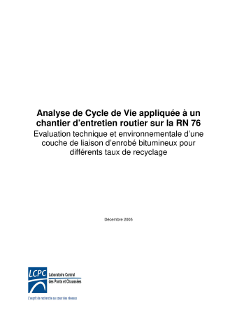 Analyse de Cycle de Vie appliquée à un chantier d'entretien routier sur la RN 76. Evaluation technique et environnementale d'une couche de liaison d'enrobé bitumineux pour différents taux de recyclage. Collecte des données environnementales
