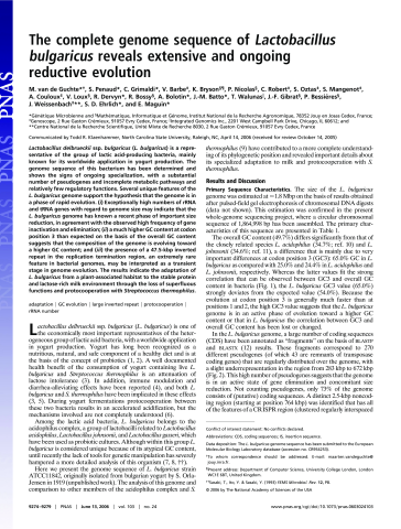 The complete genome sequence of Lactobacillus bulgaricus reveals extensive and ongoing reductive evolution