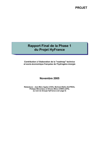 Rapport final de la phase 1 du projet HyFrance : contribution à l'élaboration de la "roadmap" technico- et socio-économique française de l'hydrogène énergie.