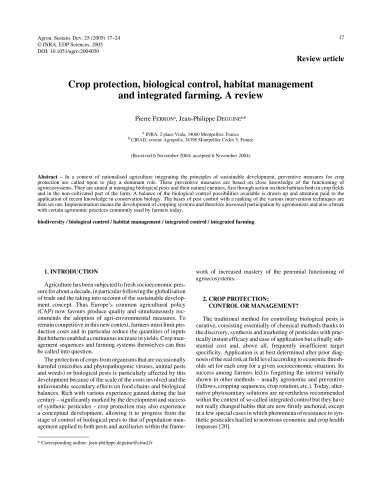 Crop protection, biological control, habitat management and integrated farming. A review