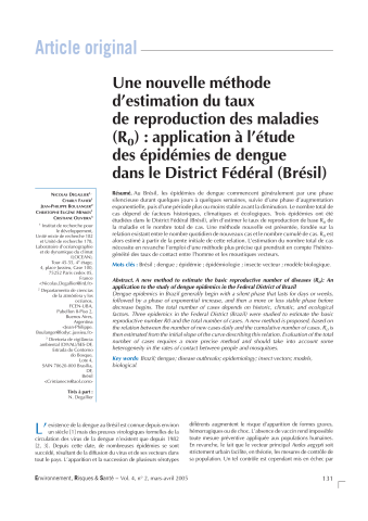 Une nouvelle méthode d'estimation du taux de reproduction des maladies (Ro) : application à l'étude des épidémies de Dengue dans le District Fédéral, Brésil
