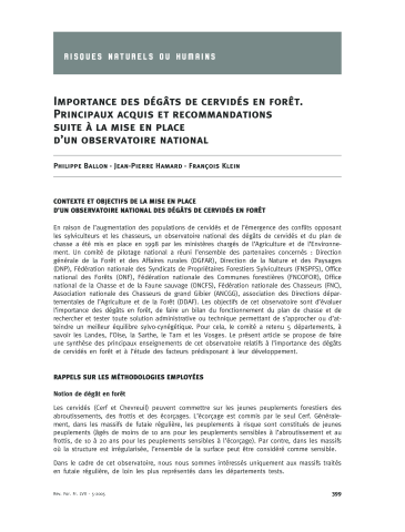 Importance des dégâts de cervidés en forêt. Principaux acquis et recommandations suite à la mise en place d'un observatoire national.