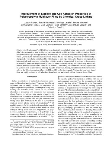 Improvement of stability and cell adhesion properties of polyelectrolyte multilayer films by chemical cross-linking.