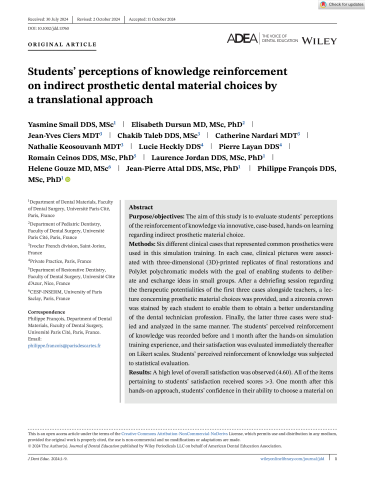 Studentsu2019 perceptions of knowledge reinforcement on indirect prosthetic dental material choices by a translational approach