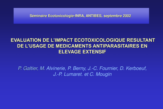 Évaluation de l'impact éco-toxicologique résultant de l'usage de médicaments antiparasitaires en élevage extensif