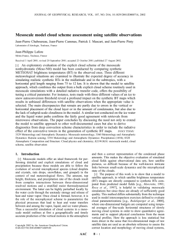 Résumé : An exploratory evaluation of the explicit cloud scheme of the mesoscale nonhydrostatic (Meso-NH) model has been conducted by comparing synthetic METEOSAT brightness temperatures (BT) to the observed ones. Three different meteorological situations are examined to illustrate the expected degree of accuracy in simulating realistic synthetic BTs in the midlatitude and in the subtropics, with a horizontal grid length ranging from 75 to 12 km. It is shown that the model to satellite approach, which combines the output from a bulk explicit cloud scheme routinely used in mesoscale simulations with a detailed radiative transfer code, offers the possibility of tuning a critical parameter. For instance, tests made with three different values of an ice to snow autoconversion threshold reveal a profound impact on the synthetic BT maps which results in unbiased differences with satellite observations when the appropriate value is selected. The main discrepancies that remain are partly due to errors in the vertical or horizontal placement of the cloud layer or in the amount of condensates, but also due to the lack of subgrid-scale cloudiness in the model. A similar test conducted on the ice water and the liquid water paths confirms the fairly good agreement with retrievals from microwave observations. The paper concludes by discussing the need not only to extend the model to satellite approach to other well-documented cases but also to derive diagnostics from deep convection scheme characteristics in order to include the radiative effect of the convective towers in the generation of synthetic BT maps.