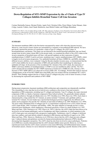 Down-Regulation of MT1-MMP expression by the alpha3 chain of type IV collagen inhibits bronchial tumor cell line invasion.