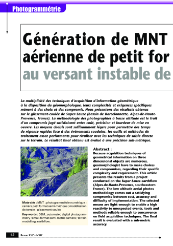 Génération de MNT par photogrammétrie aérienne de petit format : application au versant instable de Super-Sauze