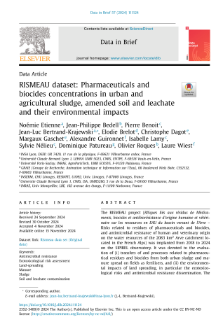 RISMEAU dataset: Pharmaceuticals and biocides concentrations in urban and agricultural sludge, amended soil and leachate and their environmental impacts